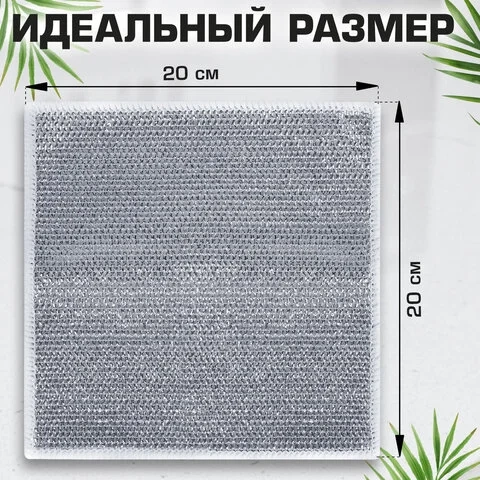 Тряпки-салфетки металлические, сетка-скрабер, 20х20 см, КОМПЛЕКТ 10 штук, для мытья посуды и уборки,