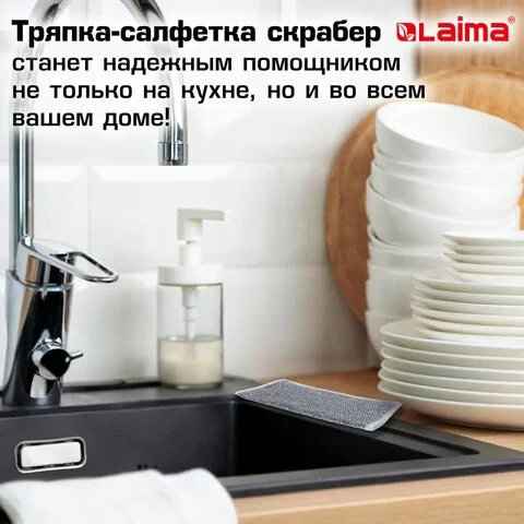 Тряпка-салфетка скрабер легко очищается от муки, каши, жира и при этом не теряет своих исходных свойств. Она быстро сохнет и не впитывает бактерии.