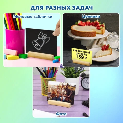 Ценникодержатель деревянный (ценники, реклама, фото) 12х3х2 см, КОМПЛЕКТ 4 шт., BRAUBERG, 291314