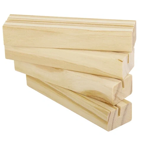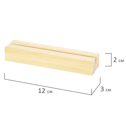 Держатели для ценников изготовлены из натуральной сосны и покрыты лаком на водной основе, обеспечивающим долговечность товара. Размер держателя составляет 120x30x20 мм, ширина пропила – 3 мм.