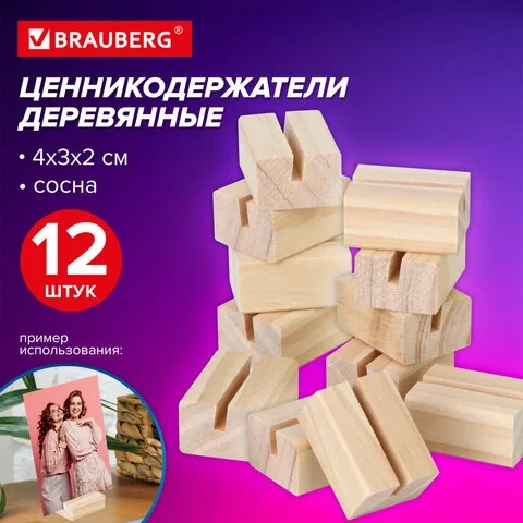 Ценникодержатель деревянный (ценники, реклама, фото) 4х3х2 см, КОМПЛЕКТ 12 шт., BRAUBERG, 291312