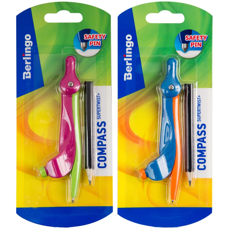 Циркуль Berlingo 'Supertwist' пластиковый, 120мм, безопасная игла, с держ., с карандашом, блистер