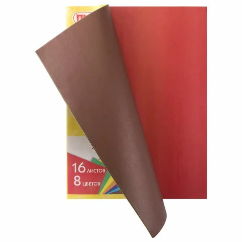 Набор газетной двусторонней цветной бумаги плотностью 50 г/м2 включает 16 листов формата А4 (200х280 мм) в 8-ми разнообразных и насыщенных однородных цветах. Листы скреплены скобами, легко режутся и сгибаются.