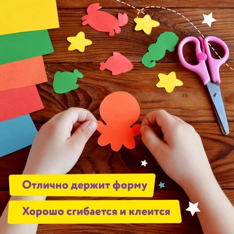 Набор двусторонней цветной бумаги плотностью 80 г/м2 включает 20 листов формата А4 10-ти различных цветов. Листы удобно упакованы в полиэтиленовый пакет с липким краем. Бумага легко режется и сгибается.