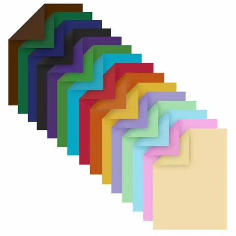 Немелованная двусторонняя цветная бумага окрашивается непосредственно в процессе изготовления и обладает плотностью 80 г/м2. Набор включает 48 листов формата А4 (210х297 мм) в 16-ти разнообразных и насыщенных однородных цветах. Листы скреплены при помощи альбомной склейки, легко режутся и сгибаются.