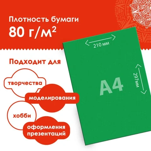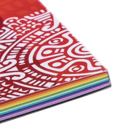 Набор офсетной двусторонней цветной бумаги плотностью 80 г/м2 включает 60 листов формата А4 (210х297 мм) в 12-ти разнообразных и насыщенных однородных цветах. Листы скреплены альбомной склейкой и упакованы в полиэтиленовый пакет с липким краем, легко режутся и сгибаются.
