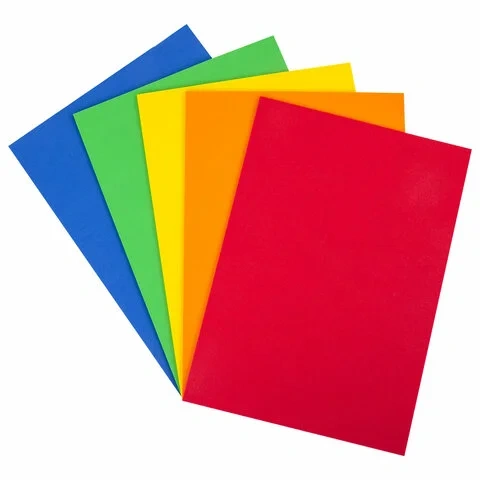 Цветная пористая резина (фоамиран) для творчества А4 ЮНЛАНДИЯ 5 ЯРКИХ ЦВЕТОВ, толщина 2 мм, с европо
