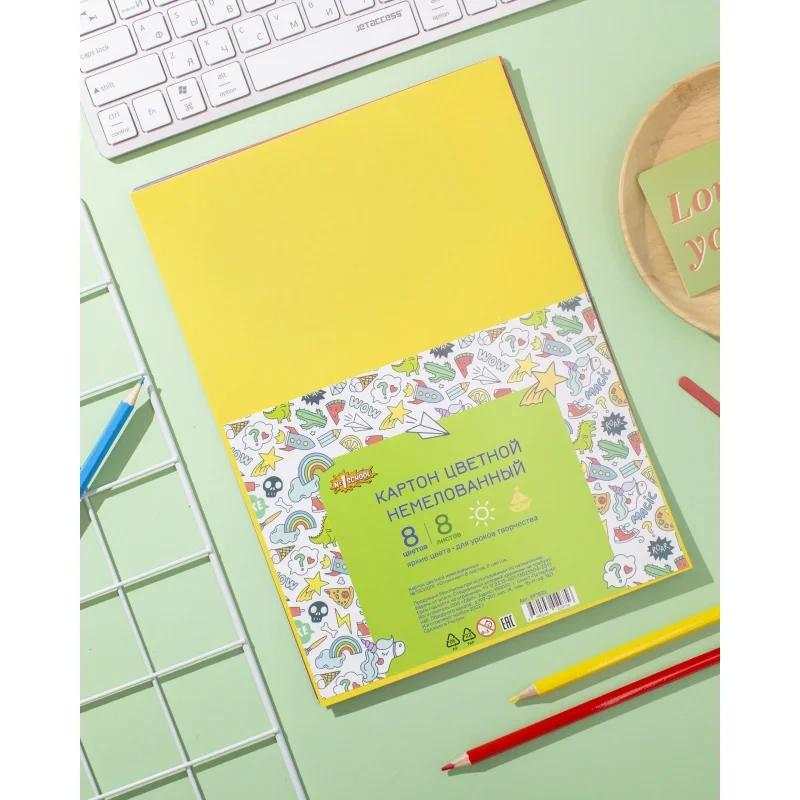 Картон цветной 1 School (Выбор есть) Отличник (282х201 мм, 8 листов, 8 цветов, немелованный)