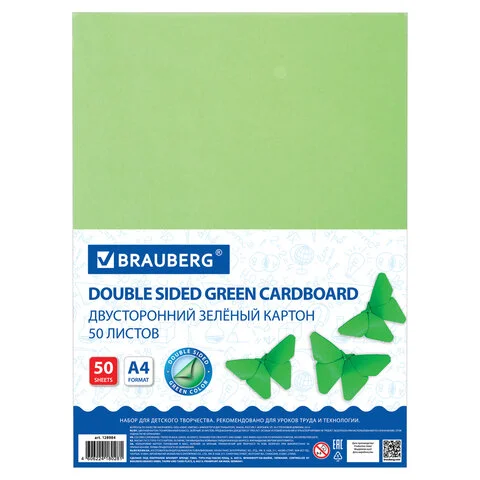 Цветной картон Brauberg зеленый, А4, 50 листов