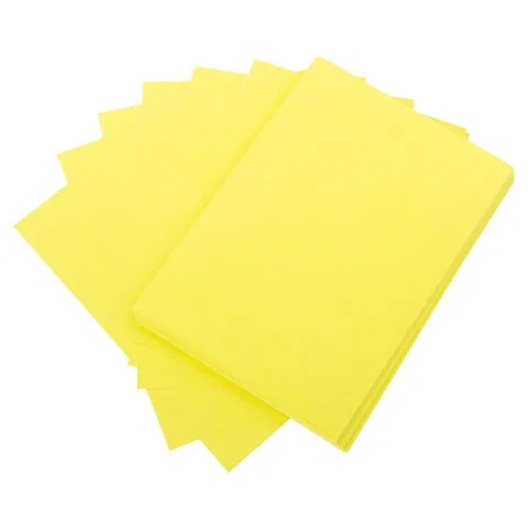 Немелованный двусторонний картон окрашивается непосредственно в процессе изготовления и обладает плотностью 220 г/м2. Может использоваться, начиная с трехлетнего возраста. Картон легко режется ножницами, сгибается и клеится. Внутренний блок состоит из 50 листов формата А4 (210х297 мм) желтого цвета.