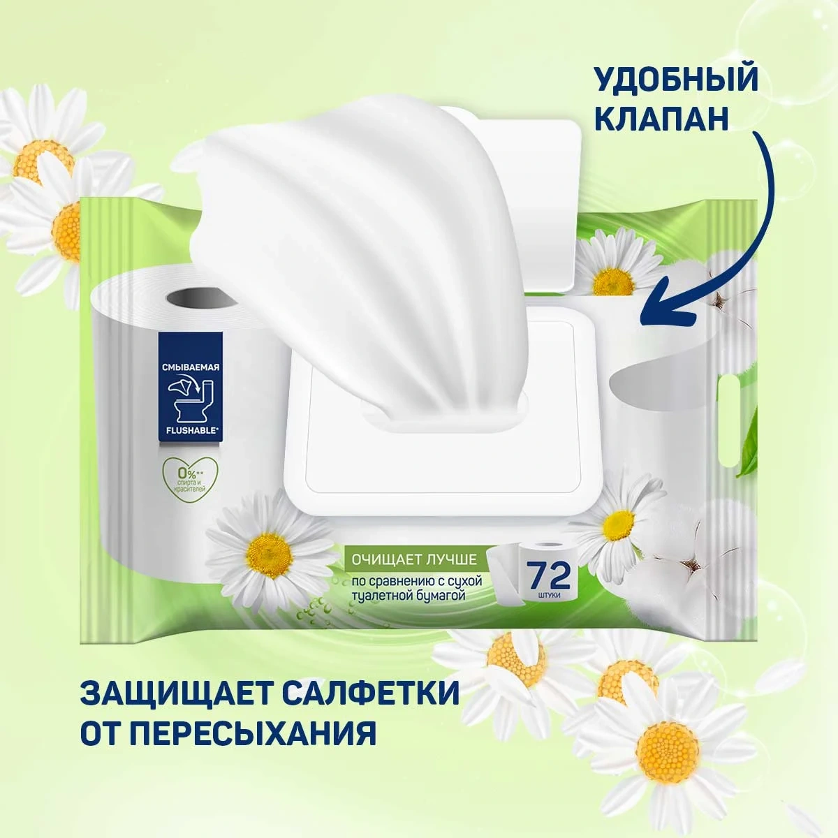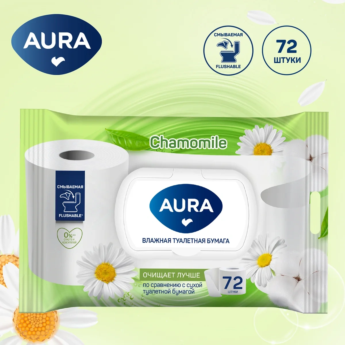 Влажная туалетная бумага Aura Ромашка 72 листа