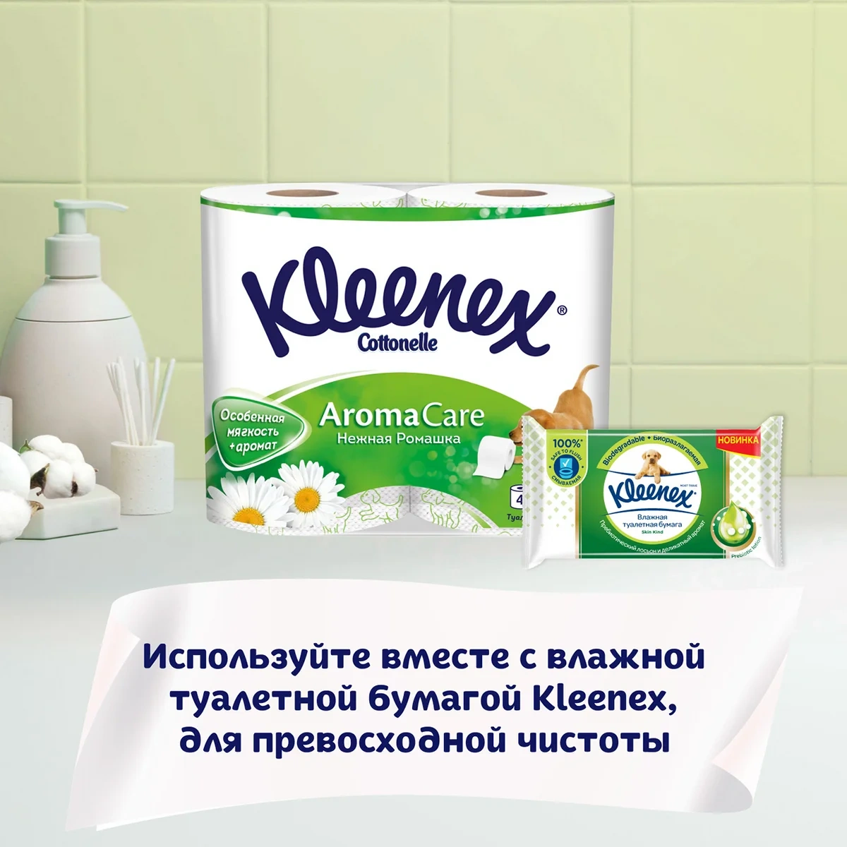 Туалетная бумага Kleenex Aroma Care ромашка, белая с рисунком, 3 слоя, 8 рулонов, 155 листов, 17.3м