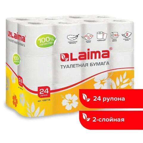 Туалетная бумага Laima без аромата 2 слоя, 24 рулона, 152 листа, 18,5м