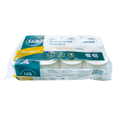 Туалетная бумага Lime Премиум в рулоне, белая, 16м, 3 слоя, 8 рулонов, 301608
