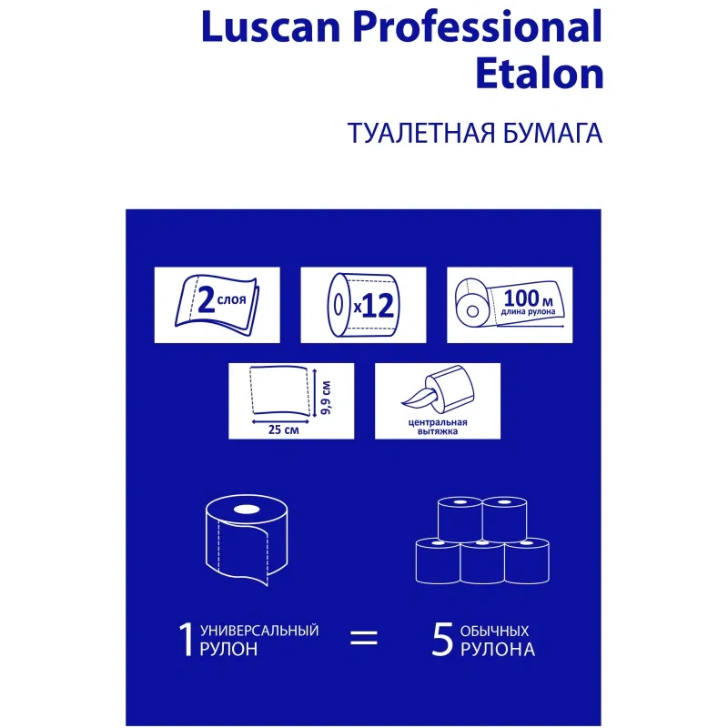 Туалетная бумага Luscan Professional Prof Etalon 2 слоя, 100м, белая, в рулоне с центральной вытяжкой, 12 рулонов