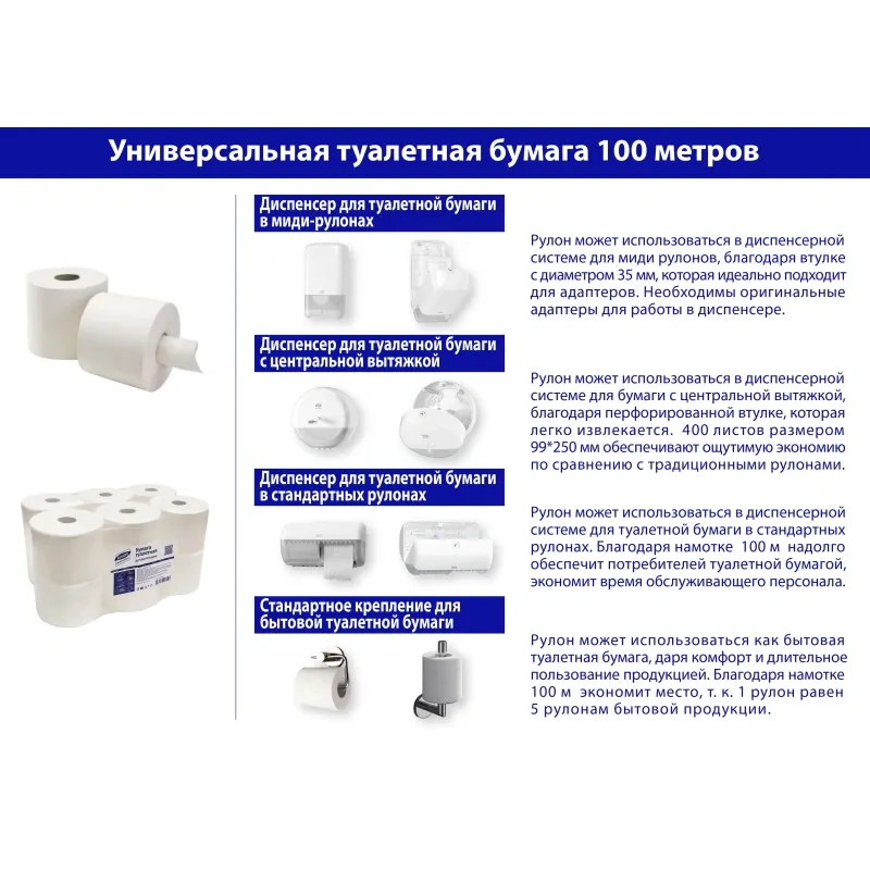 | Тип туалетной бумаги | рулонная с центральной вытяжкой |