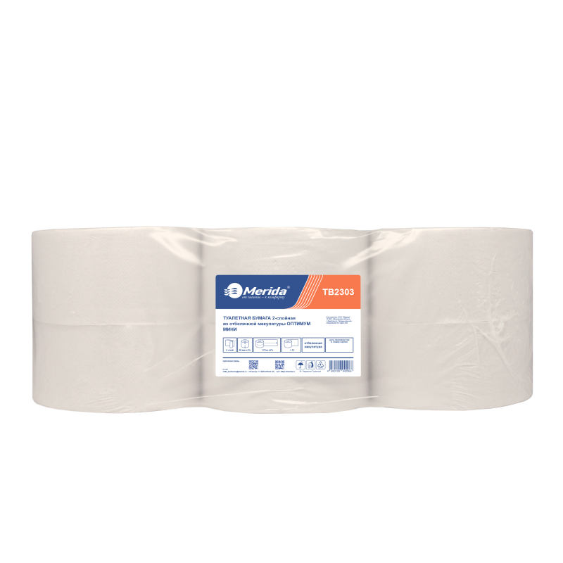 Туалетная бумага Merida Optimum Mini в рулоне, 2 слоя, белая, 170м, 12шт/уп, TB2303