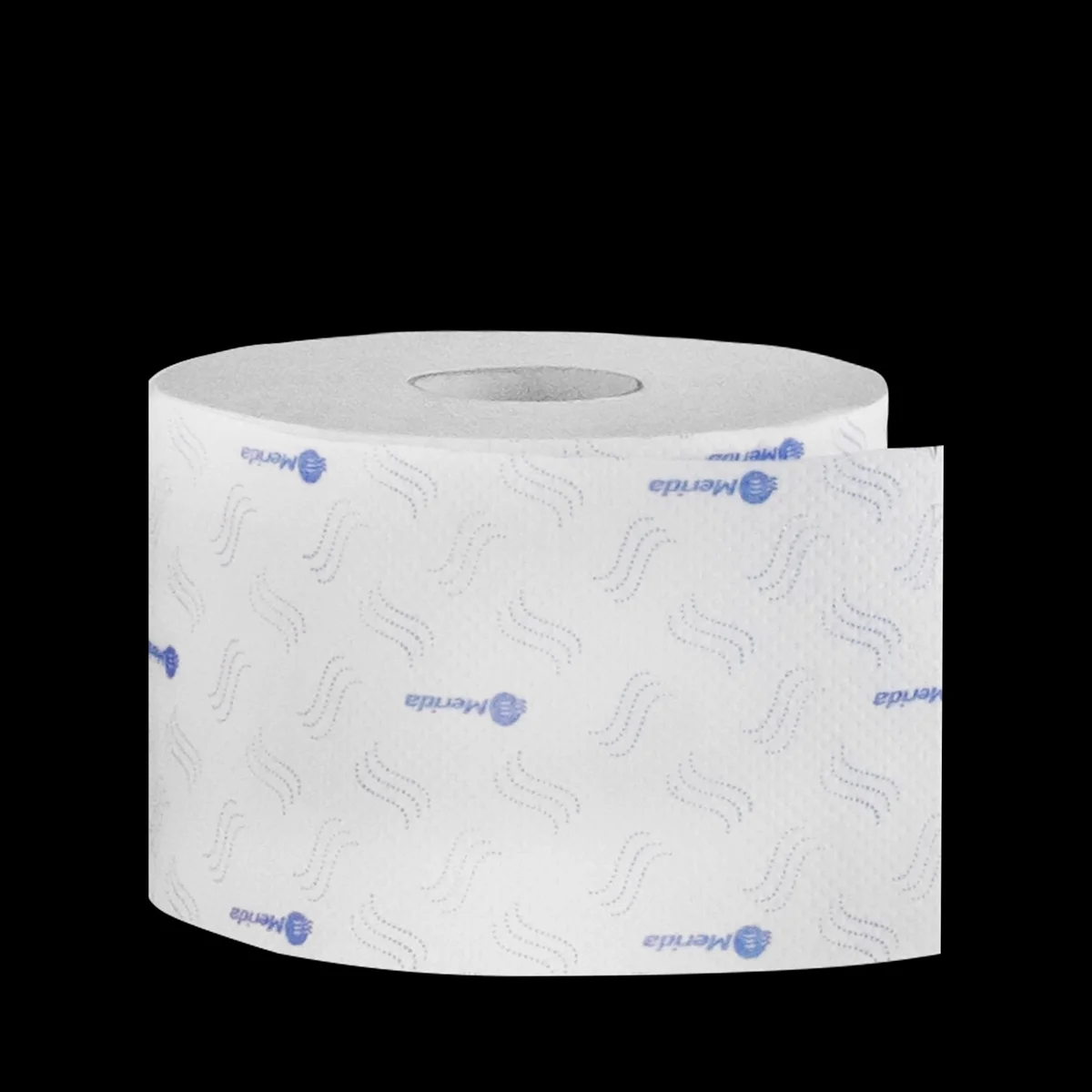 Двухслойная бытовая туалетная бумага в рулонах Merida из 100 целлюлозы с перфорацией, тиснением и синим рисунком подходит для небольших санитарных комнат, а также для использования в бытовых целях. Намотка в одном рулоне 80 м.