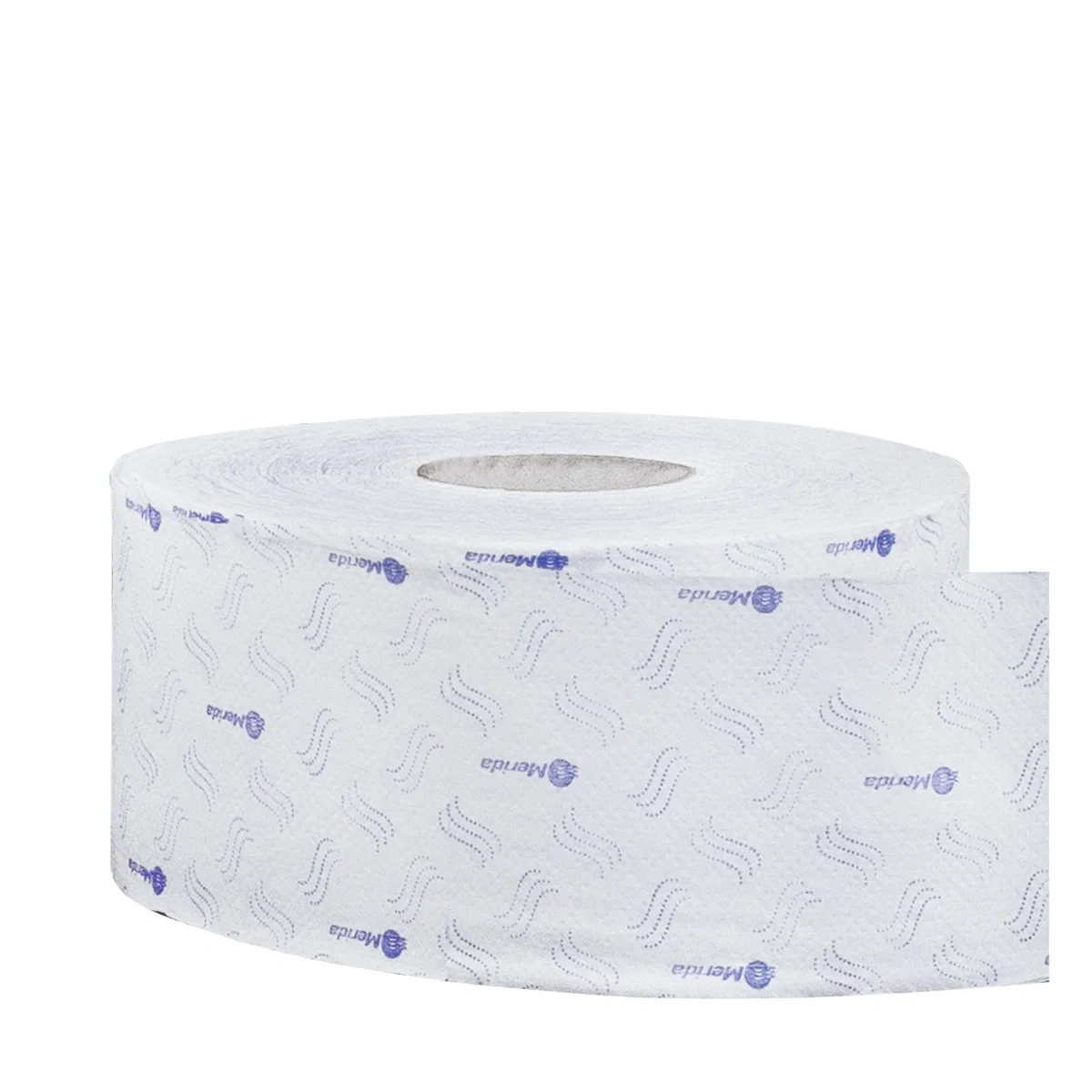 Туалетная бумага Merida TB2403 в рулоне, Топ+ Принт Мини, 2 слоя, 170м, белая с синим рисунком, 12шт/уп
