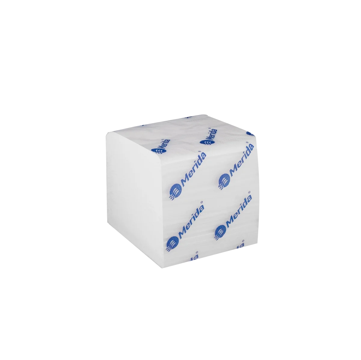 Двухслойная туалетная бумага в листах Merida из 100 целлюлозы подходит для санитарных комнат в местах большой и средней проходимости. Полистовая подача обеспечивает высокий уровень гигиены и экономный расход. Походит для диспенсеров системы Tork T3.