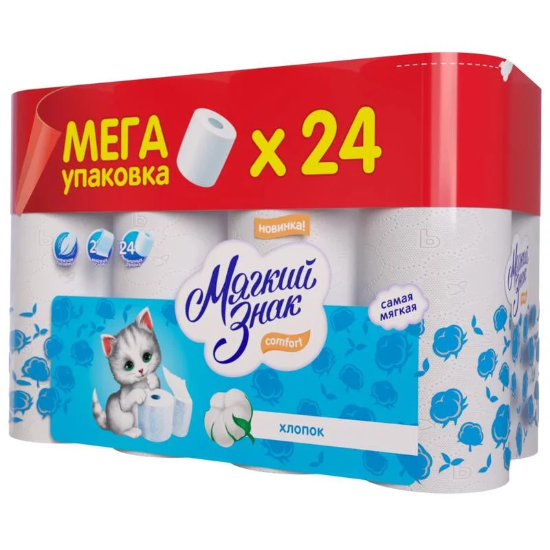 Туалетная бумага Мягкий Знак Comfort белая, 2 слоя, 24 рулона, 16м