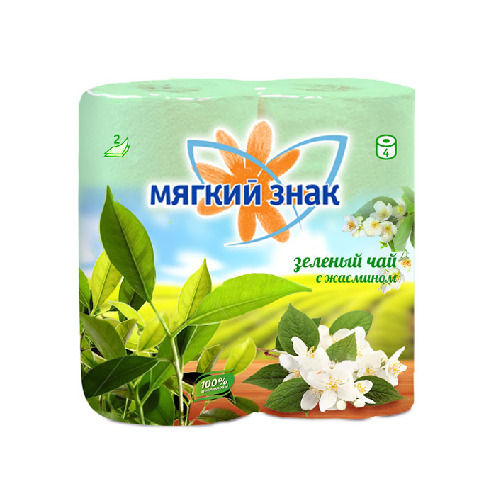 Туалетная бумага Мягкий Знак Deluxe Aroma зеленый чай, зеленая, 2 слоя, 4 рулона, 160 листов, 20м