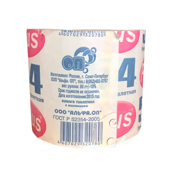 Туалетная бумага 1 слой, с тиснением.