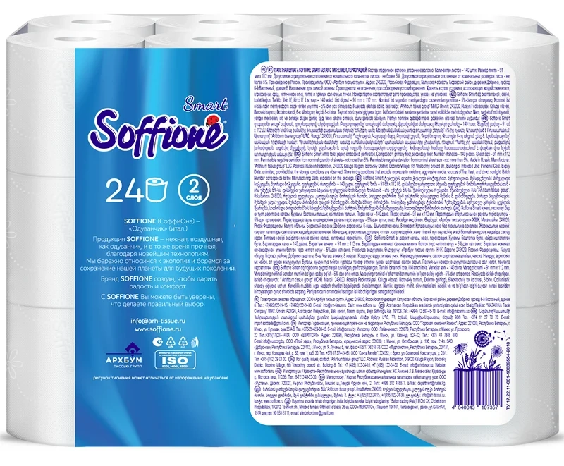 Туалетная бумага Soffione Smart двуслойная 24 рулона