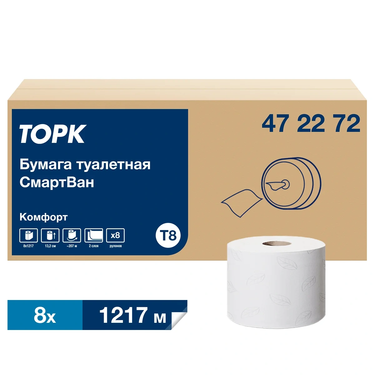 Туалетная бумага Tellus (tork) Advanced Т8, 472272, в рулоне, 207м, 2 слоя, белая