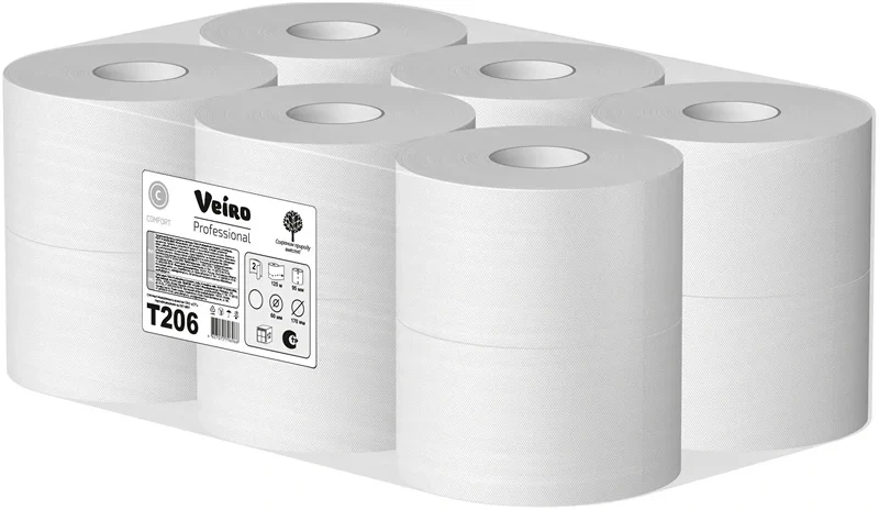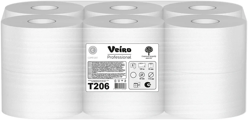 Туалетная бумага Veiro Professional Comfort Т206, в рулоне, 125м, 2 слоя, белая