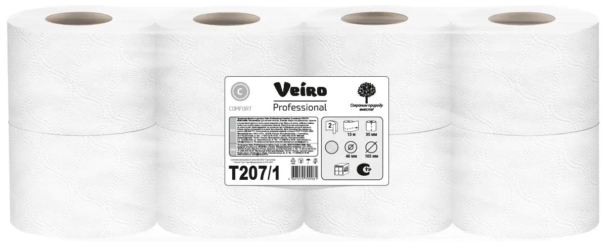 Туалетная бумага Veiro Professional Comfort Т207/1, белая, 2 слоя, 15м, 8 рулонов