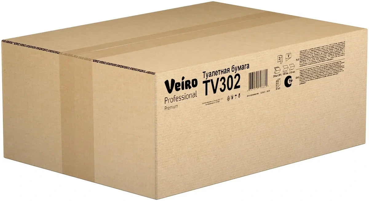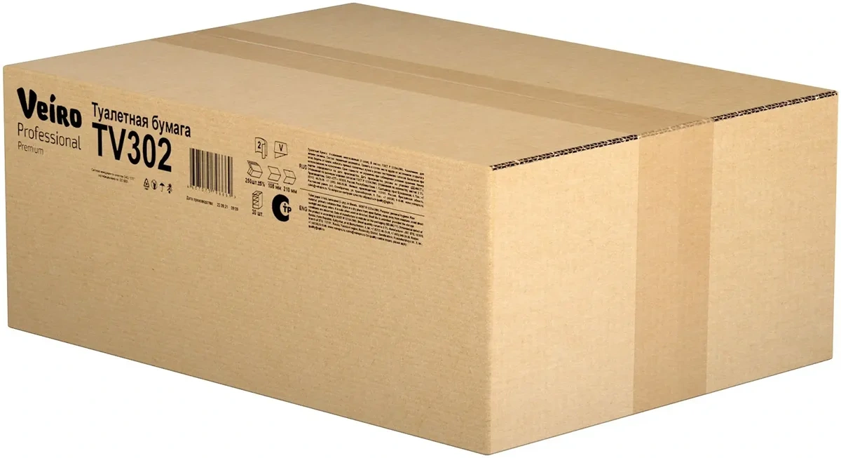 Туалетная бумага листовая Veiro Professional Premium TV302, 250 листов, 2 слоя, белая, V укладка