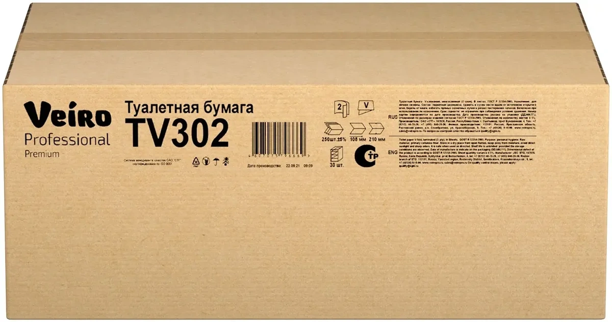 Листовая туалетная бумага V-сложения относится к премиальным решениям для требовательныхклиентов. Оптимальный размер листа гарантирует рациональный расход, уникальный рисуноктиснения обеспечивает высокую мягкость и прочность бумаги.Продукция выполнена из полностью сертифицированного сырья в соответствии с ГОСТоми международными стандартами качества.Производитель Сыктывкар Тиссью ГрупСтрана происхождения РоссияКоличество листов в пачке/рулоне 250Вес упаковки (кг) 6.04Цвет БелыйКоличество слоев 2Тиснение ДаСостав Первичная целлюлозаРазмер листа 210х108 ммПроцент белизны (%) 84-86Система L-ONEТип сложения V (ZZ, Singlefold)Ширина рулона/листа (мм) 210Категория качества PremiumКоличество единиц в упаковке 30ГОСТ P 52354-2005