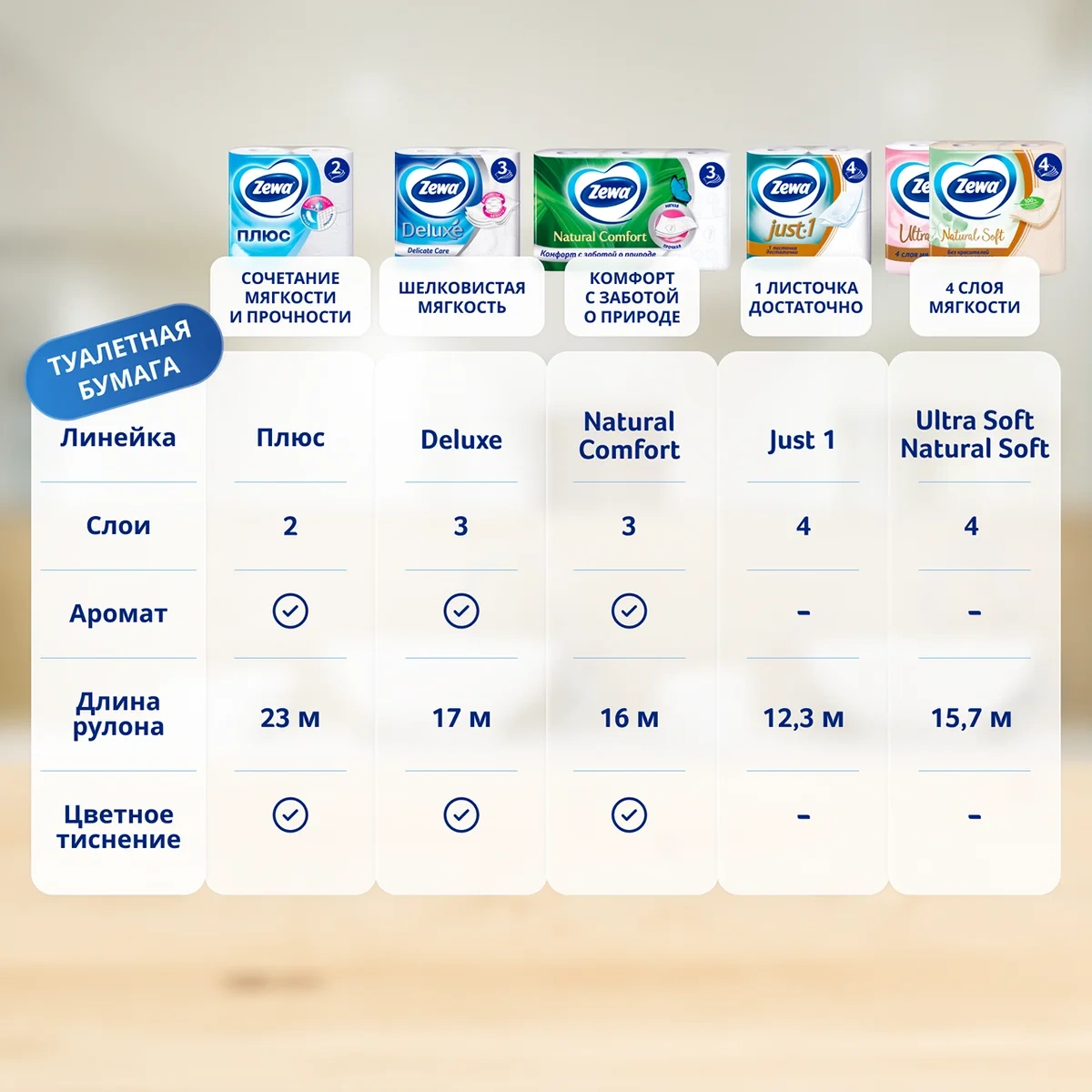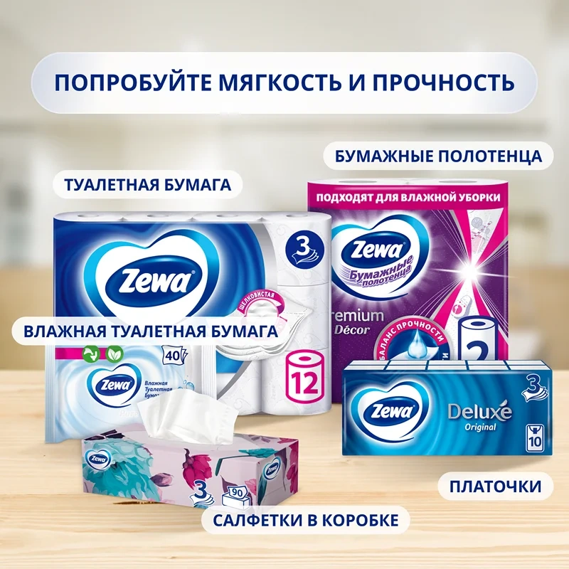 Туалетная бумага Zewa Deluxe 3-слойная, 12 рулонов