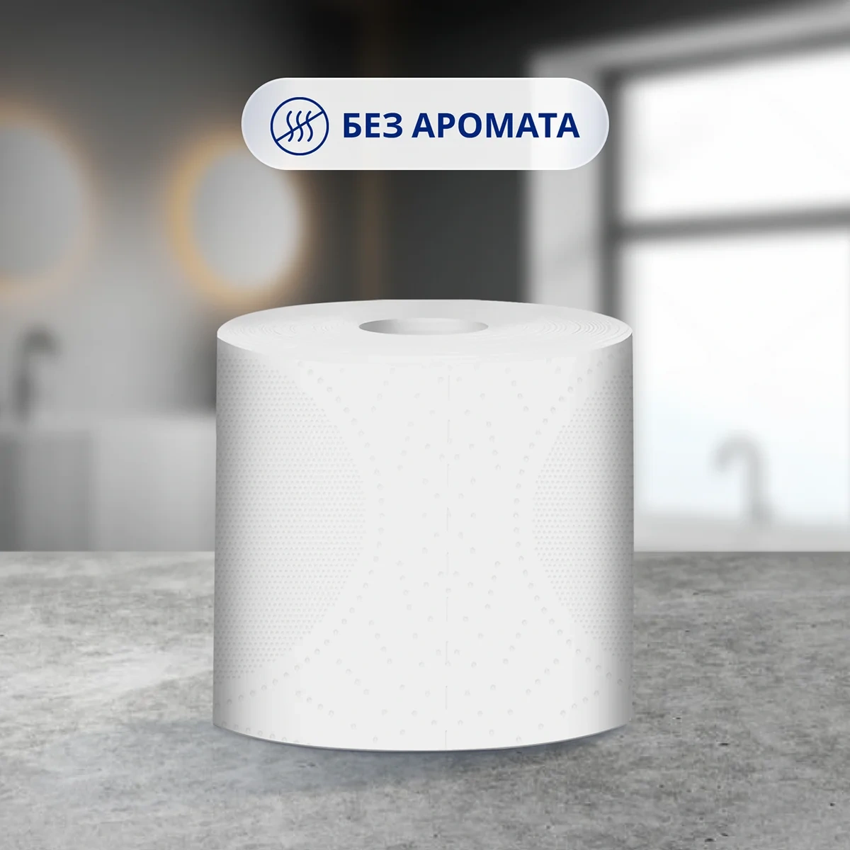 Белая 4-х слойная туалетная бумага без аромата, предназначенная для обеспечения высокого уровня гигиены и комфорта. Каждый листочек увеличен на 20% и стал толще на 50%, что способствует лучшему впитыванию и более эффективному использованию.