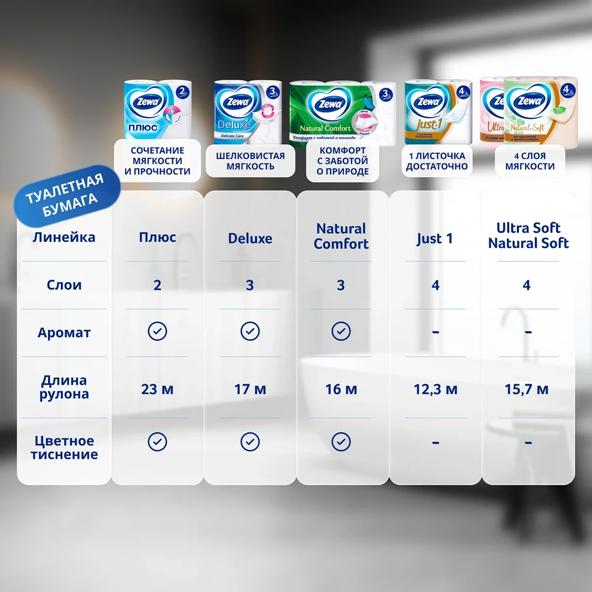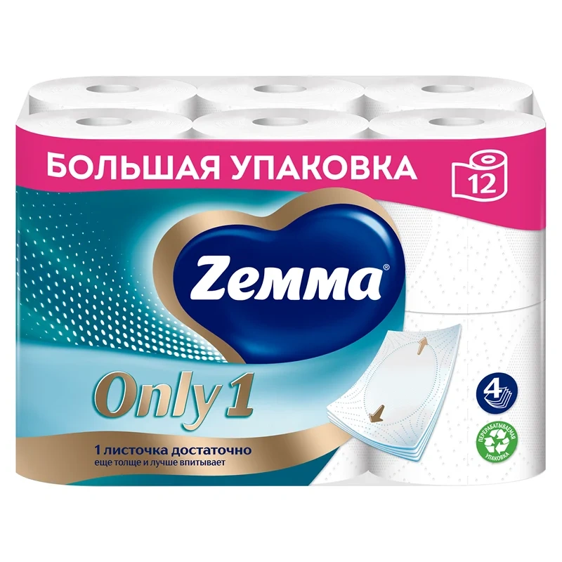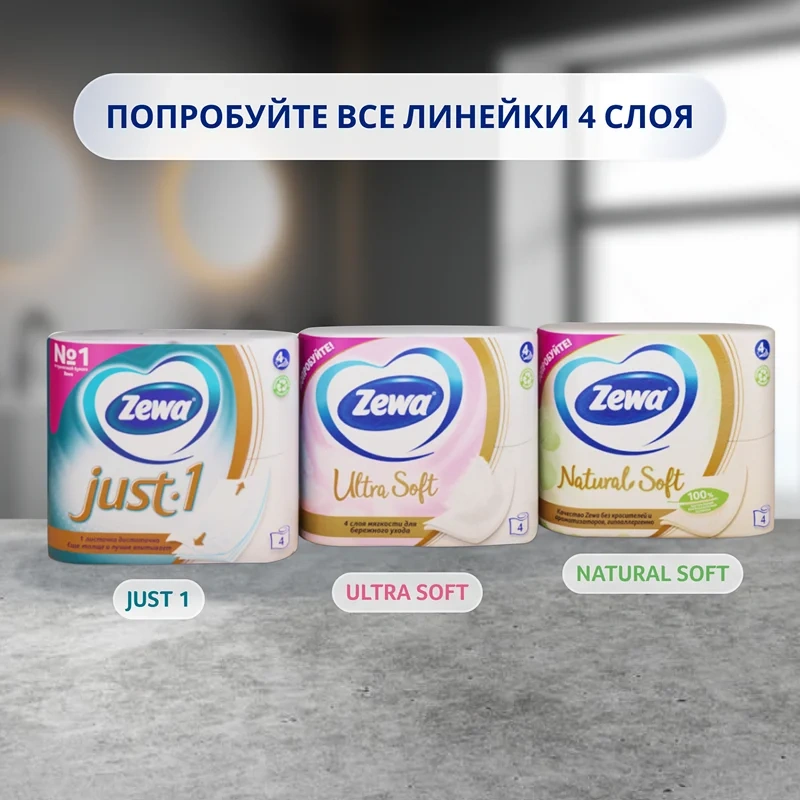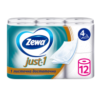 Туалетная бумага Zewa Just 1 4-слойная, 12 рулонов