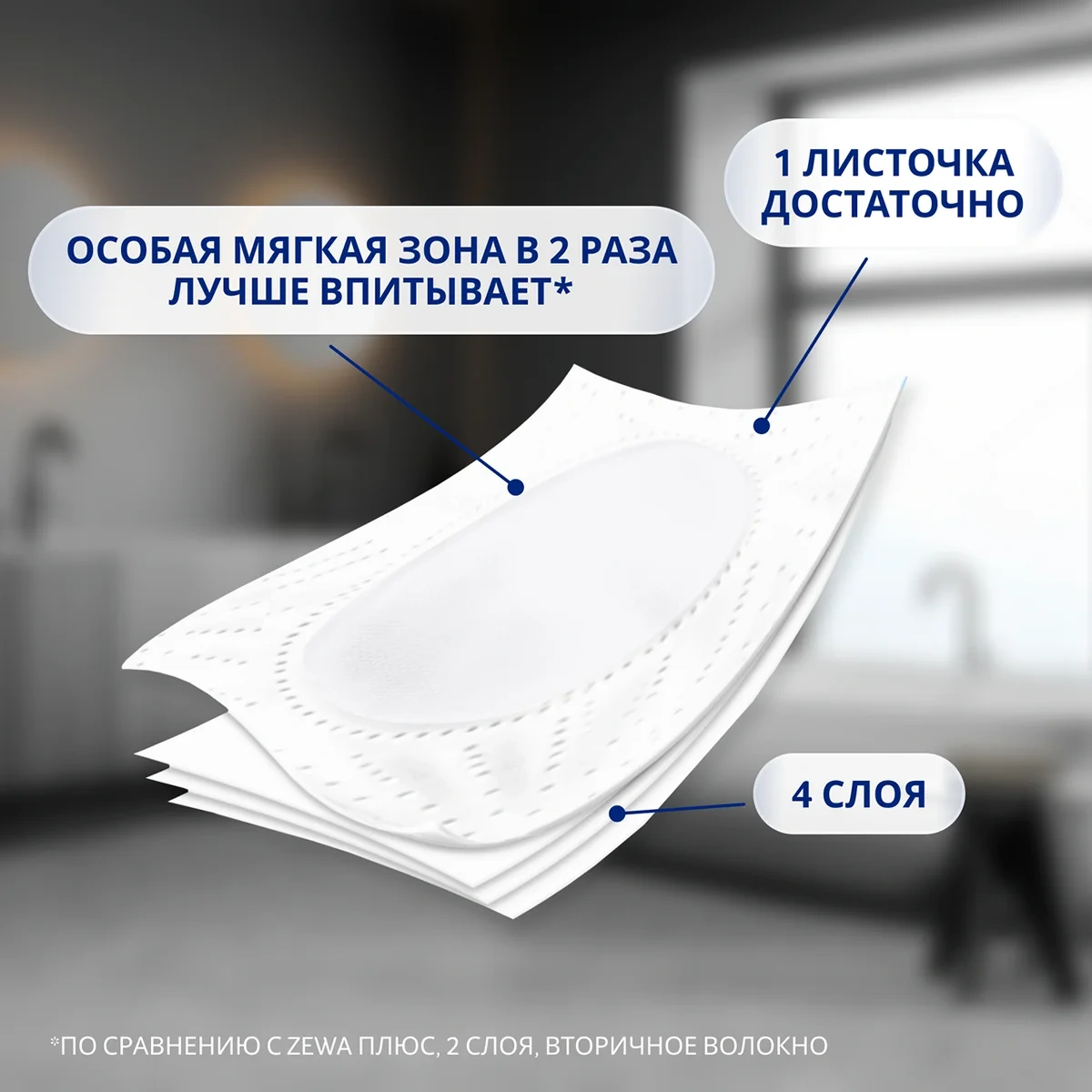 Благодаря особой мягкой зоне в центре листочка после использования Zewa Just 1 остается ощущение восхитительного комфорта. Она сочетает мягкость и прочность, одобрена дерматологами и подходит для всей семьи. Легко смывается и не вызывает затруднений при использовании.