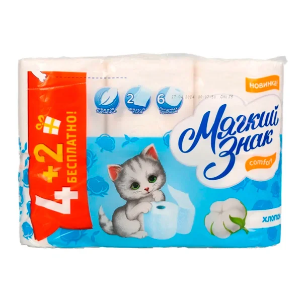 Туалетная бумага Мягкий Знак Comfort белая, 2 слоя, 16.2м, 6 рулонов, Промо