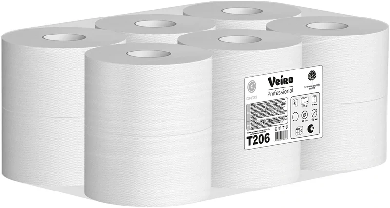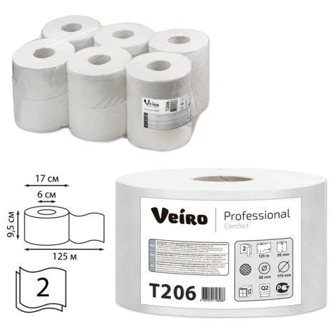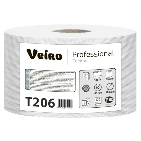 Туалетная бумага Veiro Professional Comfort T206, в рулоне, 125м, 2 слоя, белая, 1 рулон