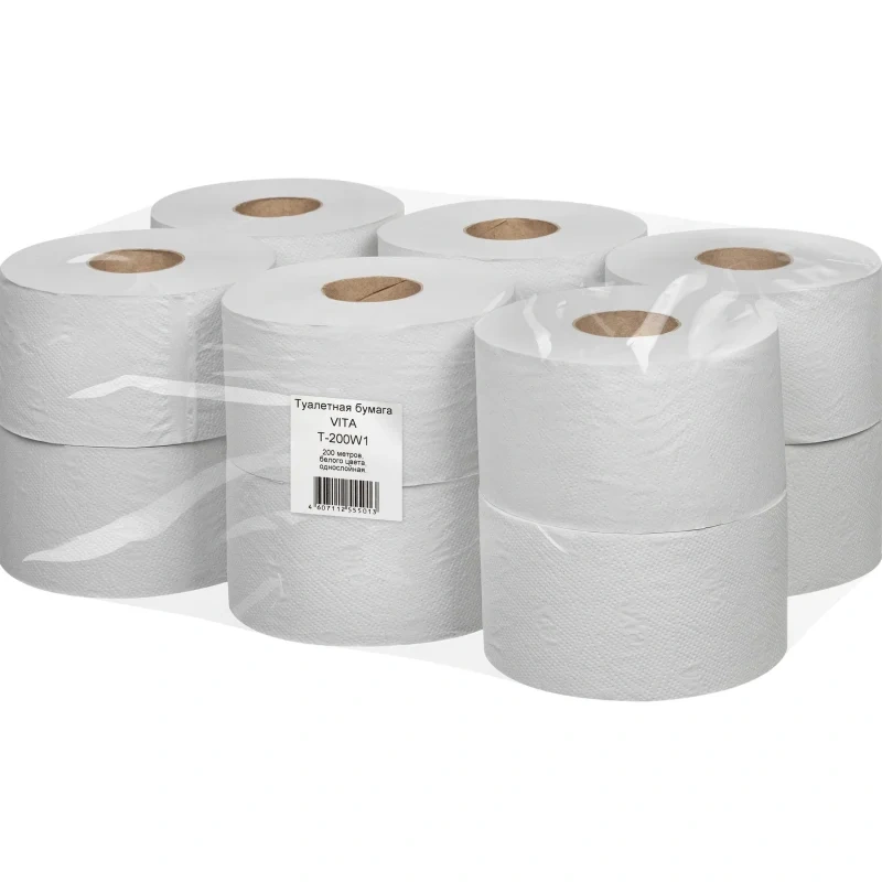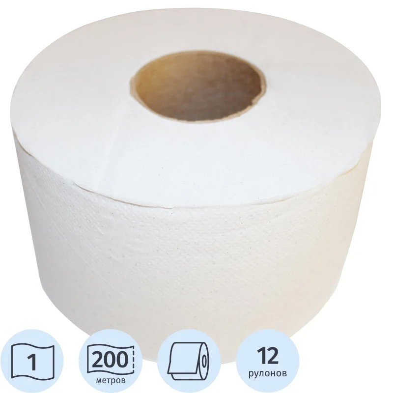 Бумага туалетная д/дисп 1сл бел макул втул 200м 12рул/уп 200W1
