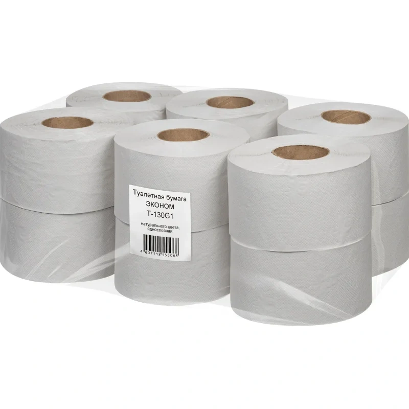 Туалетная бумага Первая цена серая, 1 слой, 130 м,12 рулонов