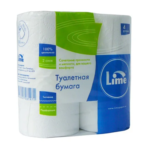 Туалетная бумага Lime без аромата, белая, 2 слоя, 4 рулона, 20м, 10.20