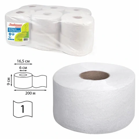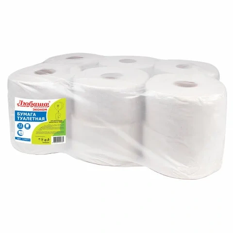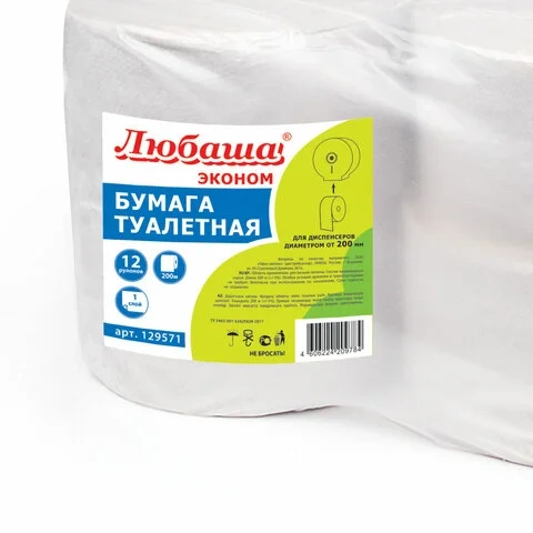 Туалетная бумага Любаша 129571, в рулоне, белая, 200м, 1 слой, 12 рулонов