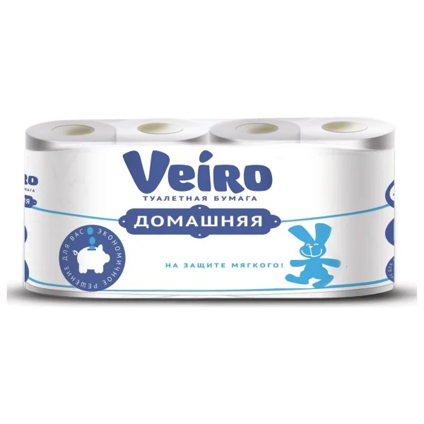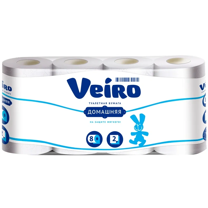 Туалетная бумага Veiro Домашняя 2 слоя, белая, 15м, 8 рулонов