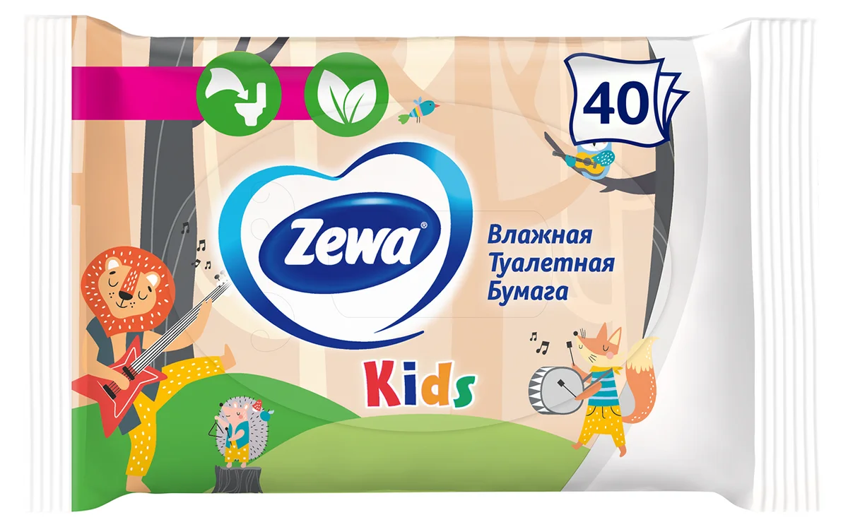 Туалетная бумага Zewa Kids влажная, 40 листов
