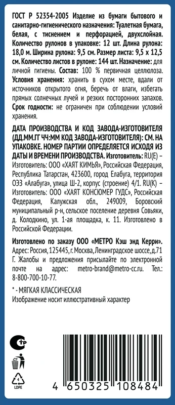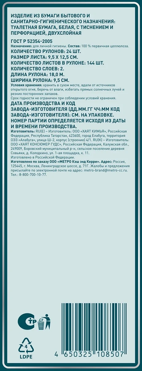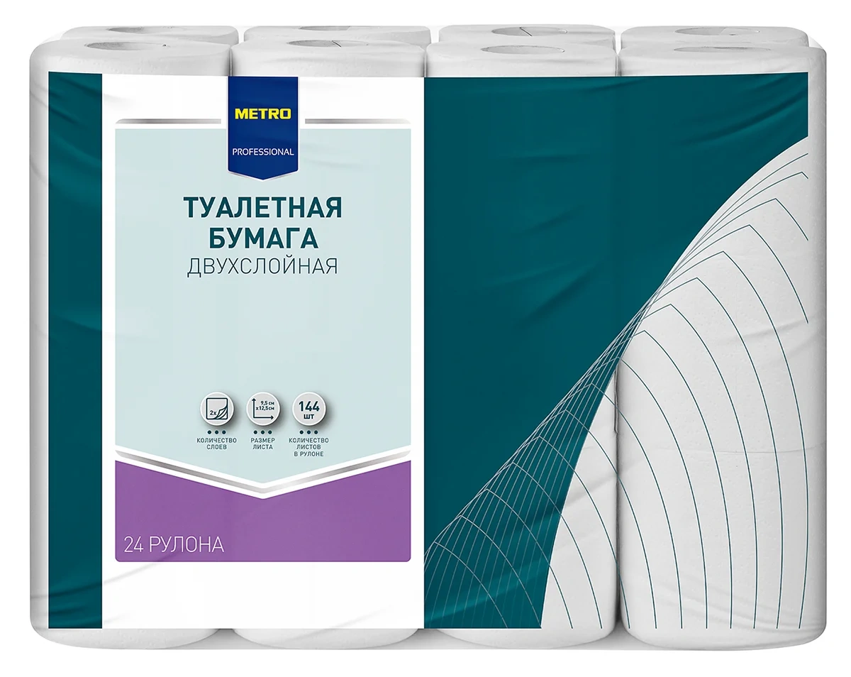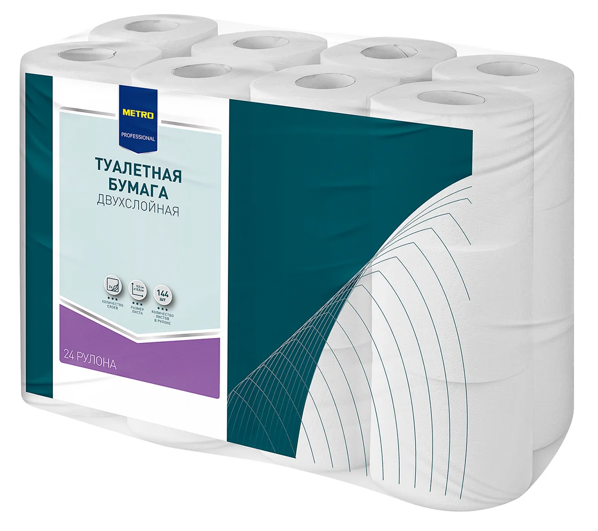Туалетная бумага Metro Professional 2 слоя, белая, 24 рулона