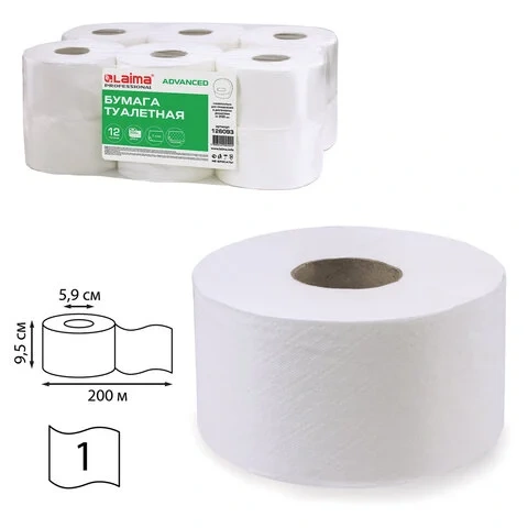 Туалетная бумага Laima Классик 126093, в рулоне, белая, 200м, 1 слой, 12 рулонов