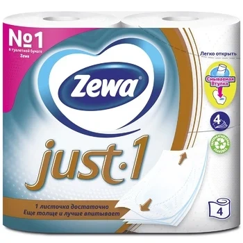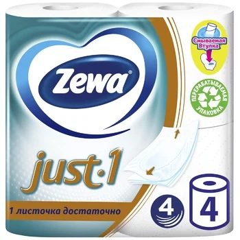 Туалетная бумага Zewa Just1 без аромата, белая, 4 слоя, 4 рулона, 90 листов, 12.3м