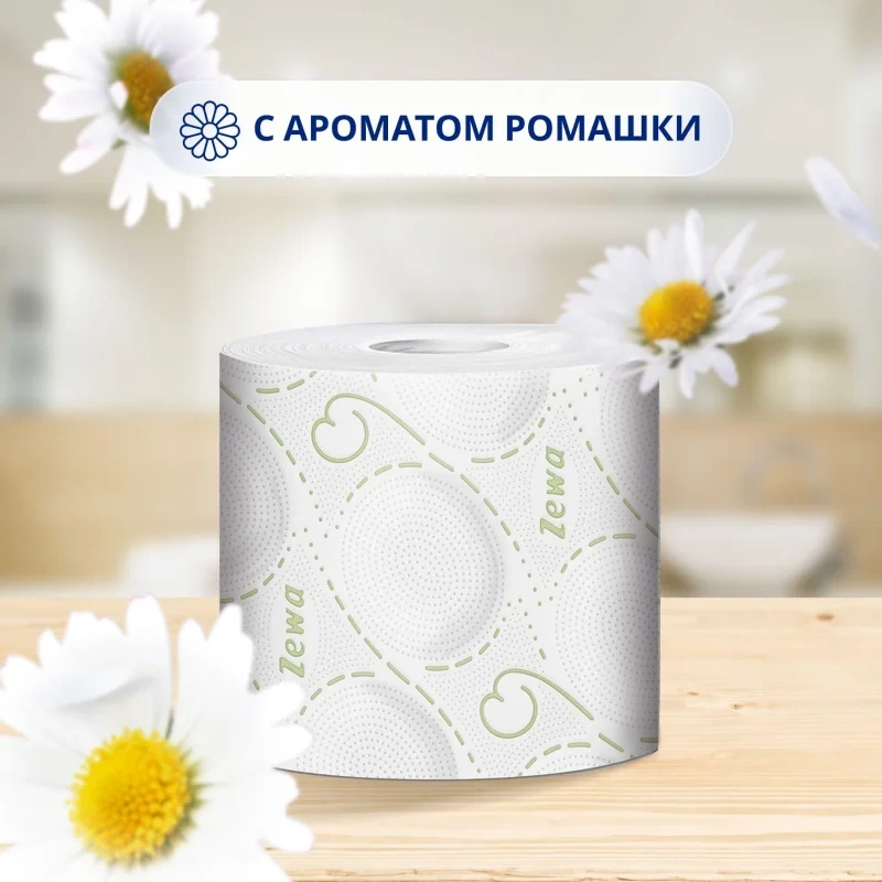 Туалетная бумага Zewa Deluxe ромашка, белая, 3 слоя, 12 рулонов, 150 листов, 21м