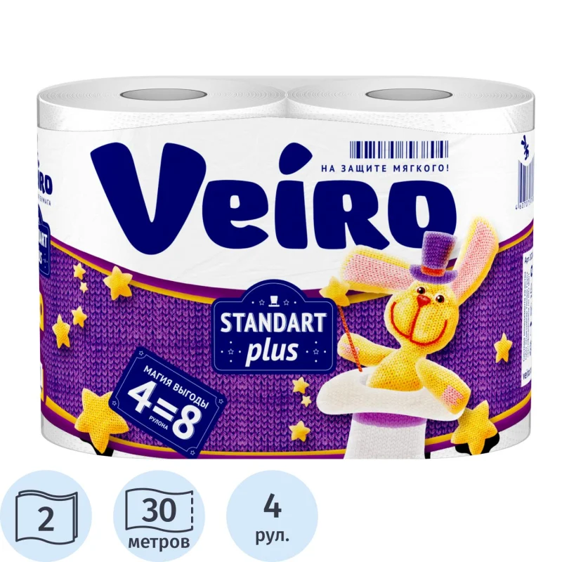 Бумага туалетная Бумага туалетная Veiro 2сл бел вторич втул 30м 240л 4рул/уп 3c24